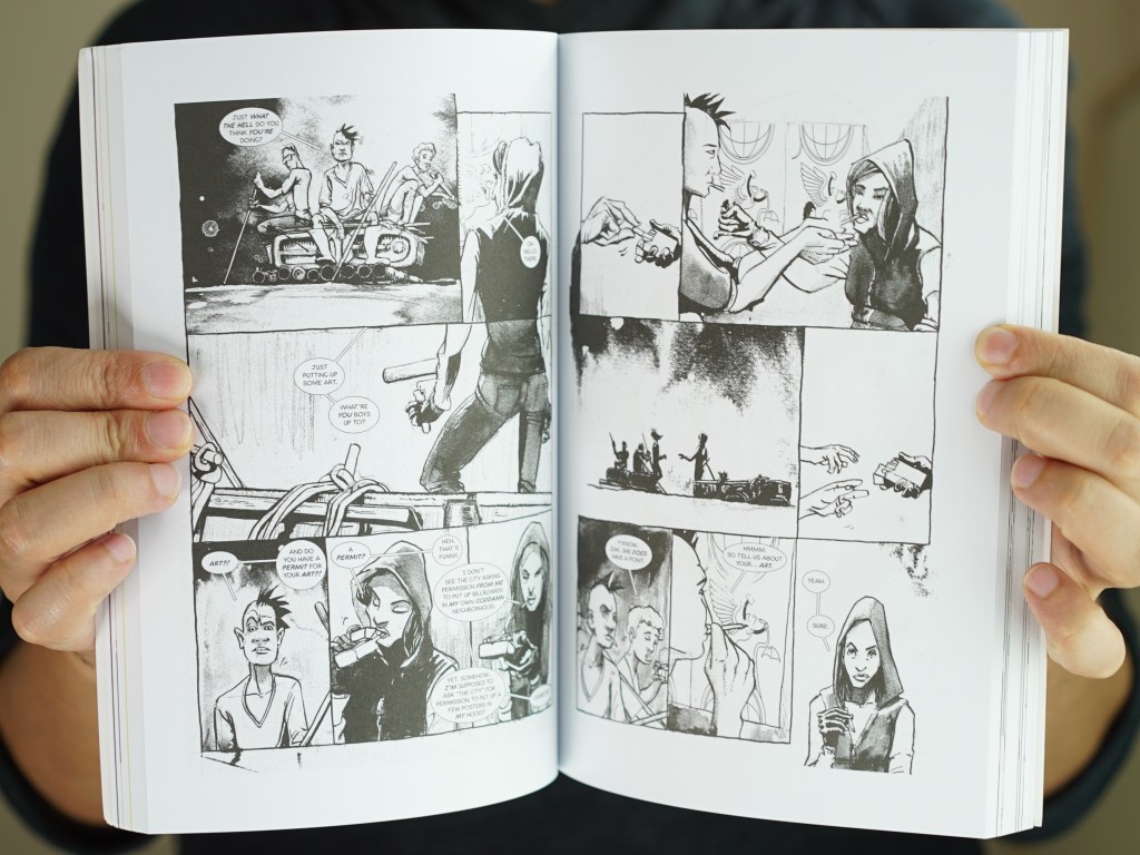 Described as a “chameleon” by Carlo McCormick in the New York Times, Ganzeer operates seamlessly between art, design, and storytelling, creating what he has coined: Concept Pop. His medium of choice according to Artforum is “a little bit of everything: stencils, murals, paintings, pamphlets, comics, installations, and graphic design.” Egyptian born, he now lives in Houston, Texas. Find him at ganzeer.com