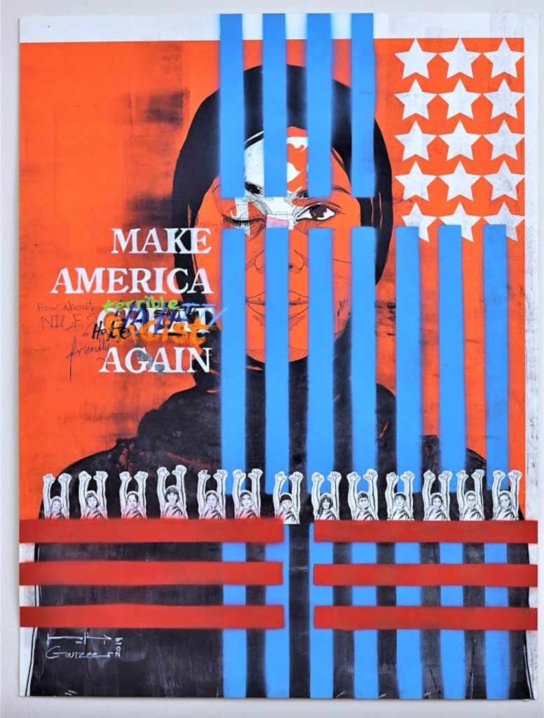 I moved to the U.S. in 2014 without much of a plan, which I generally wouldn’t advise. A commentator on Egyptian TV made false accusations against me as a result of my political street-art, after which I just picked up and left before it could snowball into anything major. I landed in New York where I lived for a year before making the move to LA to reunite with my bride to be. After a couple of years there, we spent two years in Denver and now Houston, mainly for her work. Constantly moving sucks and is also something I don’t advise. Unless your art is exclusively digital (which mine isn’t), it is really difficult to make art that way.