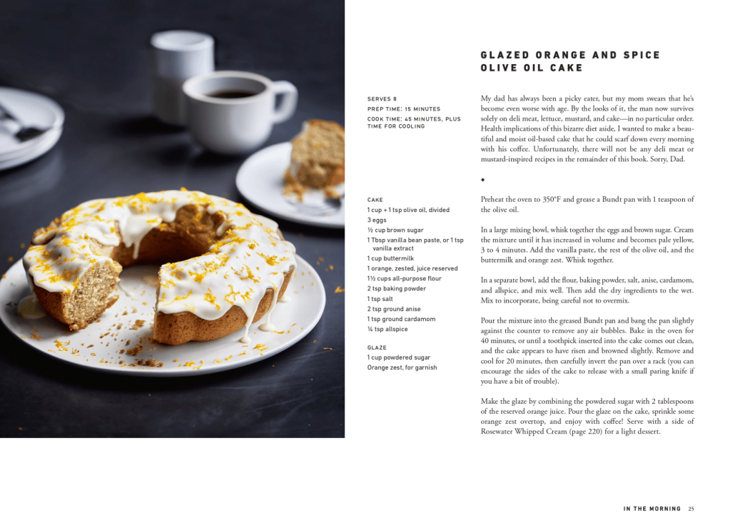 In all, this cookbook is a must read if you are interested in a fresh take on Egyptian cuisine. Although it may not fully satisfy those seeking a “traditional” meal, it is indeed authentically a book only a migrant of Egypt could write. Each recipe is a sensory journey carrying readers from sumptuous breakfast options, to late night snacks your partner will scold you over, and everything in between.