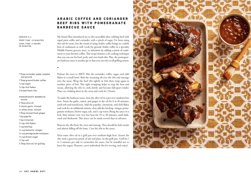 After a heartfelt and very witty introduction, the rest of the book gives you everything you need to prepare your Egyptian (Canadian) feast. From “How to Stock your Pantry” to “Tools of the Trade”, Shahir teaches you how to build the ultimate Egyptian pantry using some special food items, but mostly ingredients that can be found at your local grocery store. We are then treated to classics like Shakshuka, Shawarma, and Fattoush Salad, and invited to experiment with reimagined recipes designed with fine dining in mind, like Chickpea Fries with Harissa Mayo and Coffee and Coriander Beef Ribs with Pomegranate BBQ Sauce. Each recipe is introduced with an endearing story of family traditions and Shahir’s choices to experiment with seasoning for a fresh twist. My favorite recipe was without a doubt Gido Habib’s Ful Breakfast (see recipe below – Yum!).